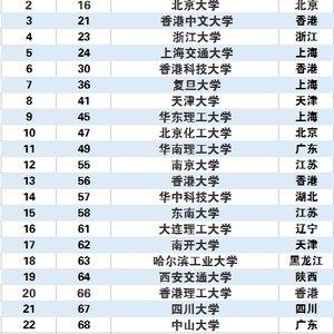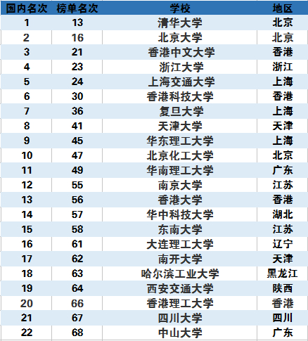 看看进入榜单的中国22所大学有哪些,他们的名次分别如何。