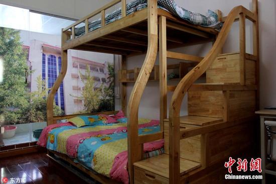 7张2016年9月4日,湖北武汉,武汉生物工程学院将迎来2016级新生,该校为新生推出的304间“高标准二人间”已经准备就绪。这批“高标准二人间”内有冰箱、空调、液晶电视、布艺沙发、全实木家具、独立卫生间以及24小时热水供应,住宿费也约是普通四人间的两倍。
