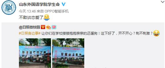 山东外国语学院学生会也发布微博:不敢谈恋爱了!