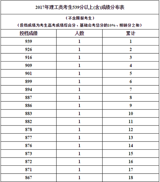 注意:不含限报考生。投档成绩为考生高考成绩综合分、基础会考总分的10%、照顾分之和。