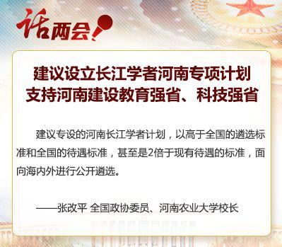 建议设立长江学者河南专项计划,支持河南建设教育强省、科技强省