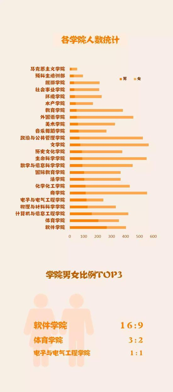 不出意外,今年机电工程学院依然是最“man”的学院,外国语学院则是小姐姐最多的学院,说不定可以来一场联谊哦。