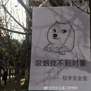 原标题:西安一高校一夜之间挂满禁烟表情包:“吸烟找不到对象”