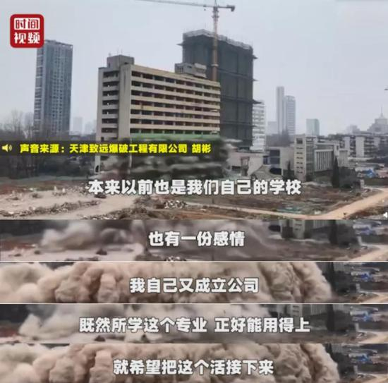 负责爆破该教学楼的是曾经在该校就读的学生胡彬,也是爆破项目的施工单位董事长。