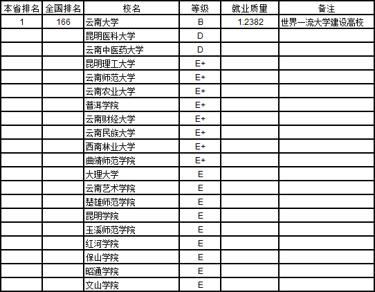 2019年评价云南省20所普通本科大学,云南省大学本科生就业质量0.5994,全国第29名。