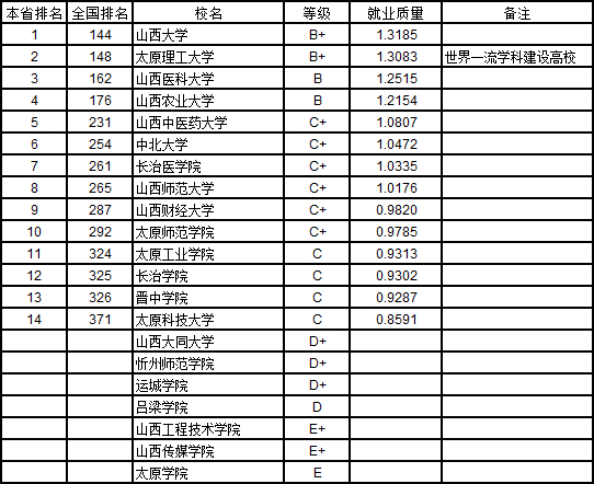 2019年评价山西省21所普通本科大学,山西省大学本科生就业质量0.9482,全国第12名。