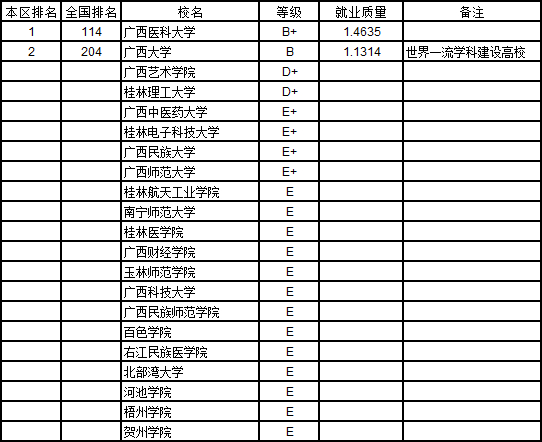 2019年评价广西壮族自治区21所普通本科大学,广西壮族自治区大学本科生就业质量0.6104,全国第28名。