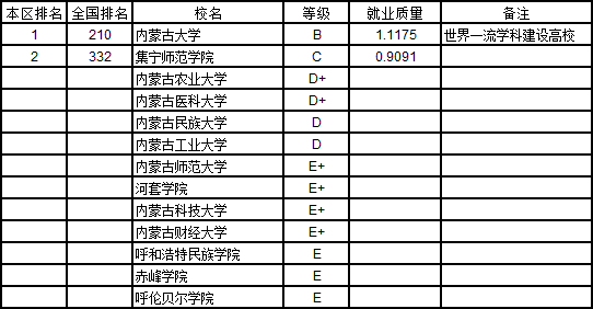 2019年评价内蒙古自治区13所普通本科大学,内蒙古自治区大学本科生就业质量0.6783,全国第25名。