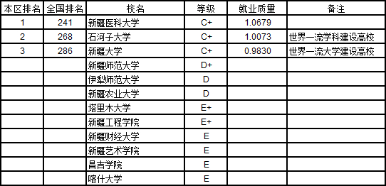 2019年评价新疆维吾尔自治区12所普通本科大学,新疆维吾尔自治区大学本科生就业质量0.6759,全国第26名。