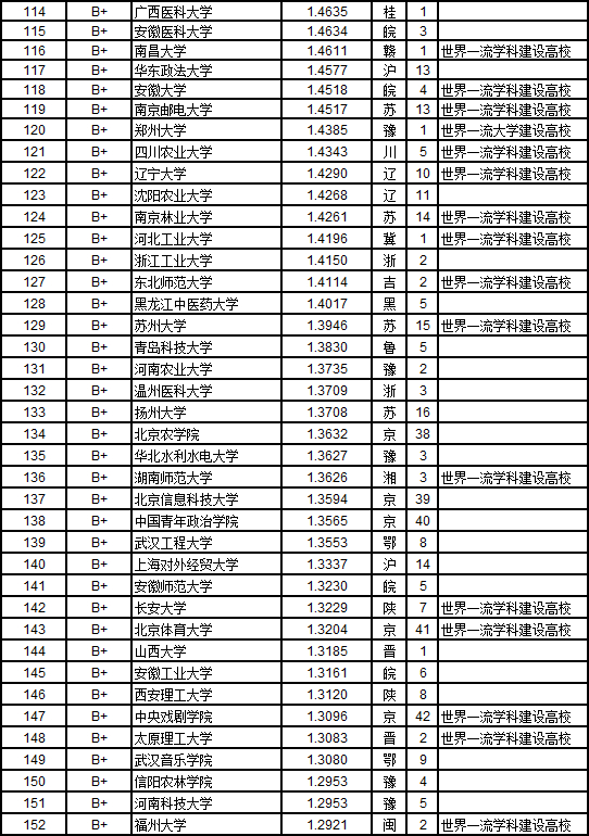 有15所世界一流学科建设高校进入前41名。依次是:北京邮电大学、中央音乐学院、中国政法大学、外交学院、中国矿业大学(北京)、对外经济贸易大学、北京交通大学、中国石油大学(北京)、南京理工大学、西安电子科技大学、北京外国语大学、哈尔滨工程大学、北京科技大学、中央财经大学、北京中医药大学。