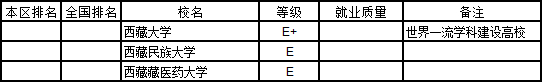 2019年评价西藏自治区3所普通本科大学,西藏自治区大学本科生就业质量0.4676,全国第31名。