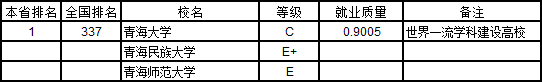 2019年评价青海省3所普通本科大学,青海省大学本科生就业质量0.6441,全国第27名。