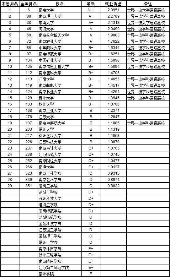 2019年评价江苏省43所普通本科大学,江苏省大学本科生就业质量1.2059,全国第3名。