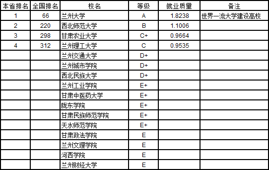 2019年评价甘肃省16所普通本科大学,甘肃省大学本科生就业质量0.7665,全国第23名。