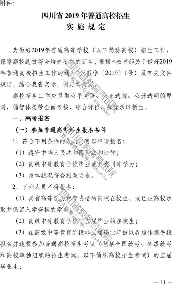四川省2019年普通高校招生实施规定近日下发,对四川2019年高考招生录取工作进行统一安排部署,其中包括今年我省高考各批次的志愿填报时间、录取批次安排、志愿设置及志愿填报办法等。