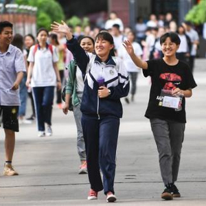 资料图:6月8日,广州华师附中考点,考生在考试结束后轻松走出考场。中新社记者 姬东 摄