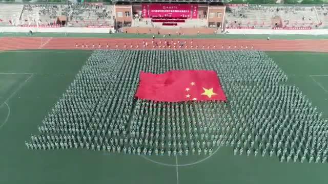 9月7日,陕西西安医学院新生军训汇演,学校特意制作了一面巨幅国旗向祖国献礼。辅导员表示,此举旨在增强学生的爱国主义情怀,庆祝祖国70周岁生日。
