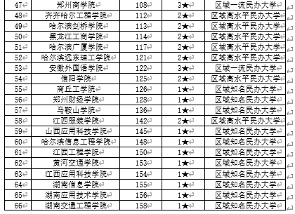 在最新艾瑞深校友会2020中国民办大学排名160强中,武昌首义学院、文华学院、郑州工商学院、武汉学院、湖南涉外经济学院、汉口学院、武汉工商学院、武汉华夏理工学院、江西科技学院、黑龙江财经学院名列艾瑞深校友会2020中国中部地区民办大学排名前10强。