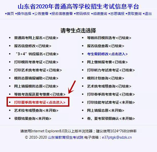 点击[打印夏季高考准考证]。