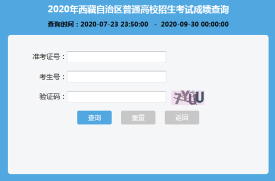 2020年西藏高考成绩查询系统开通,点击此处查询。