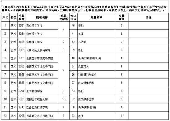 江西第二批本科艺术单志愿缺额院校及专业(二次征集)