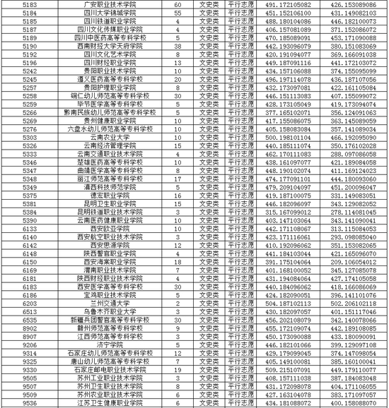 重庆市2020年普通高校招生录取信息表高职专科批-文史类
