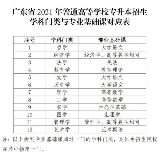 1.广东省2021年普通高等学校专升本招生学科门类与专业基础课对应表