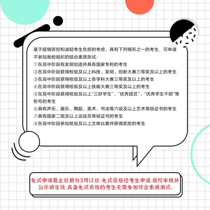 艺术类(美术)考生无需参加我校组织的综合素质测试。