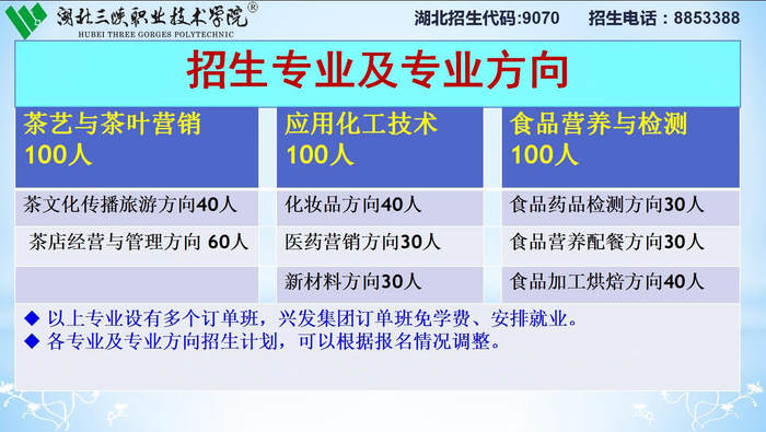 茶店经营与管理方向:主要面向大型茶叶生产加工企业、茶叶连锁经营企业、茶叶门店、茶叶网店等单位从事茶叶生产加工、茶叶质量监控、茶店经营管理、茶叶线上线下营销等工作。