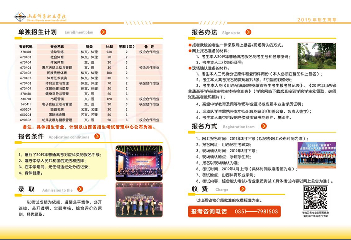 2019年山西体育职业学院专科(单招)招生简章