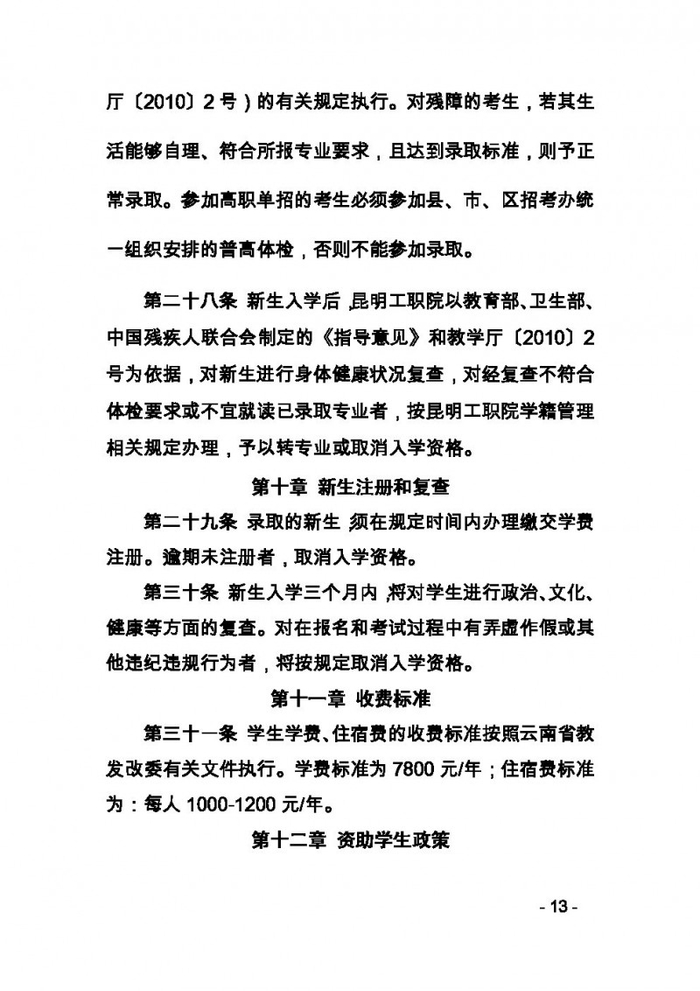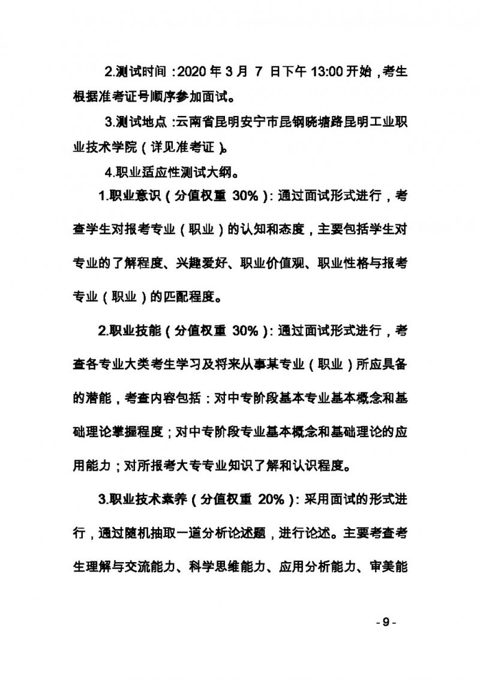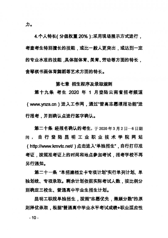 昆明工业职业技术学院2020年单独招生章程