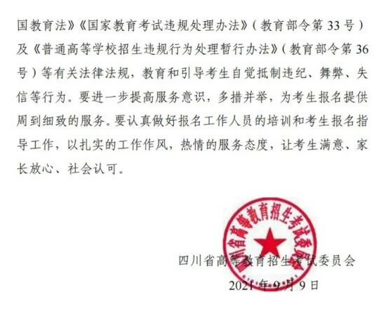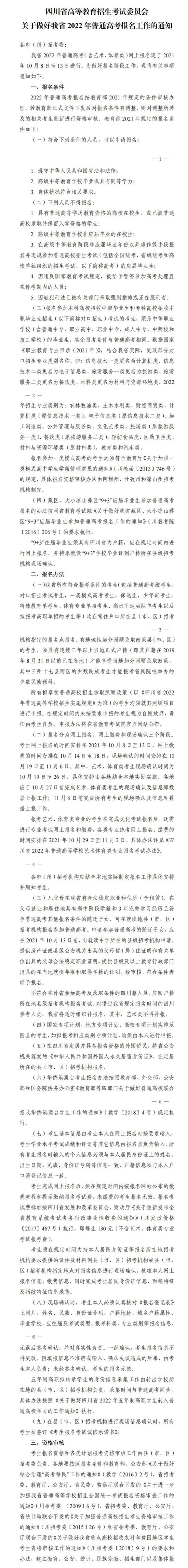 四川省2022年普通高考(含艺术、体育类)网上报名定于2021年10月8日至13日进行。