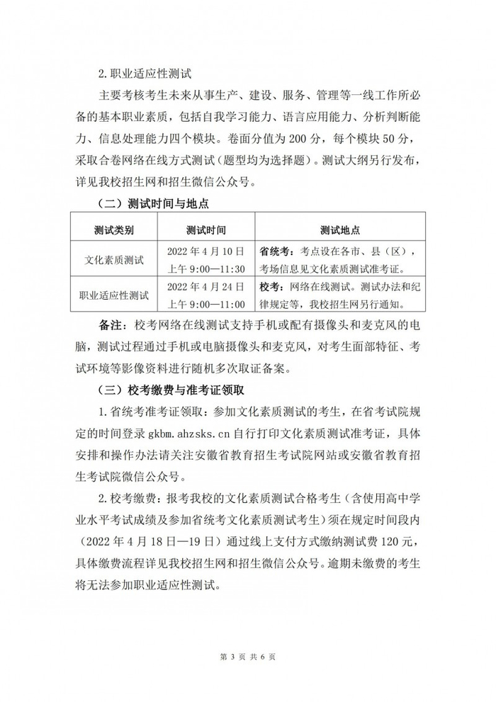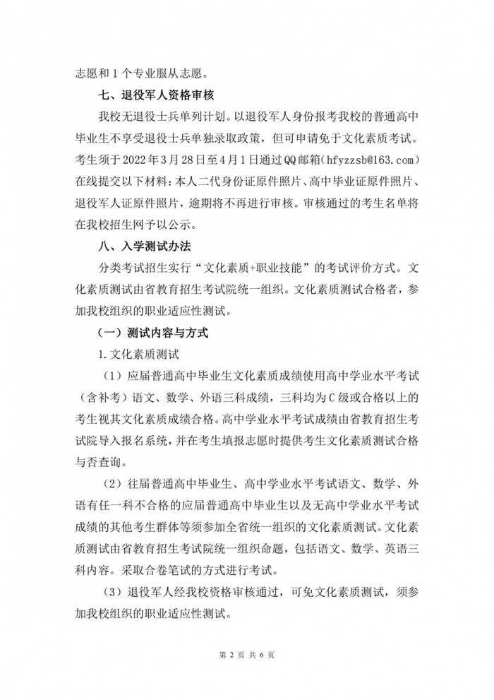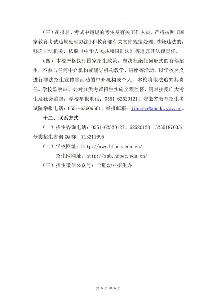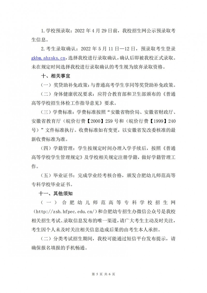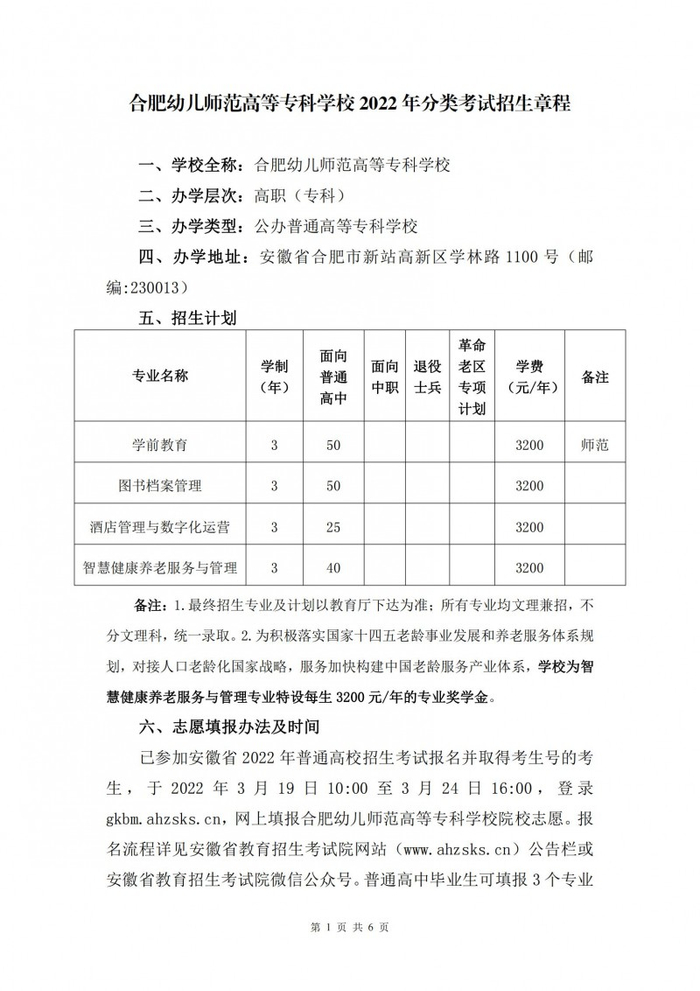 合肥幼儿师范高等专科学校2022年分类考试招生章程