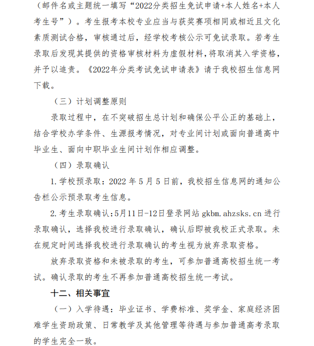 安徽林业职业技术学院2022分类考试招生章程