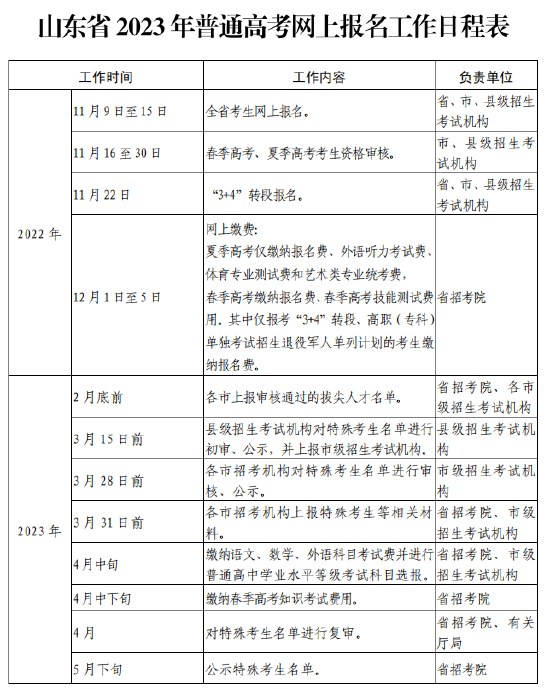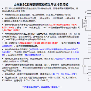 山东省高考报名自今日(2022年11月9日)开始进行。2023年高考报名分为网上填报信息、网上资格审核、网上确认并缴费等3个阶段。