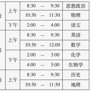 2026年第一次合格考定于明年1月22日至24日进行,考试科目包括语文、数学、外语、思想政治、历史、地理、物理、化学、生物学,各科满分均为100分。