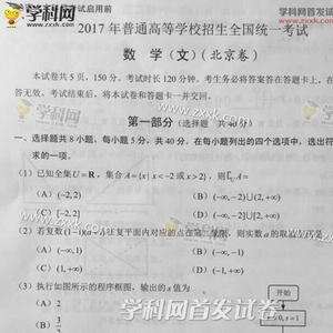 新浪教育讯 2017年高考数学考试已结束,以下为2017高考数学文真题(北京卷)及参考答案。[适用地区:北京]