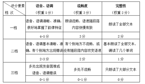 2。口语部分的模仿朗读、口头表达均为主观题。模仿朗读10分,口头表达30分,共40分。