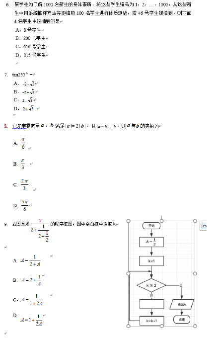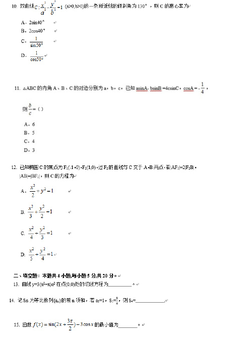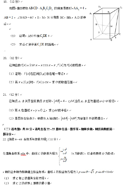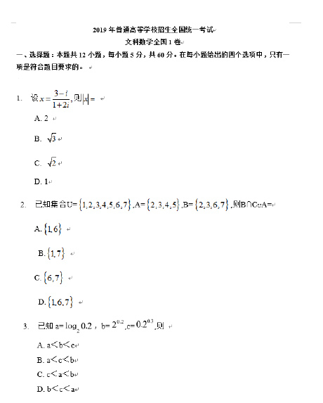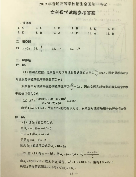 2019年高考文科数学真题及参考答案(全国卷Ⅰ)