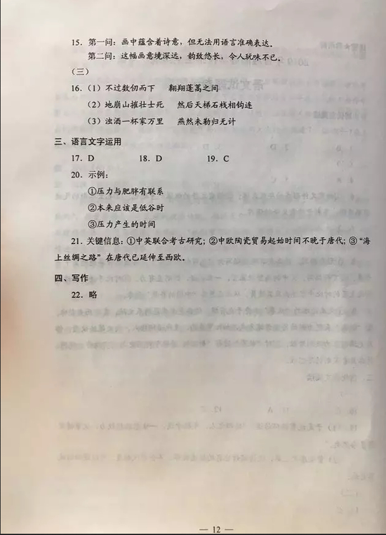 2019年高考语文真题及参考答案(全国卷Ⅰ)