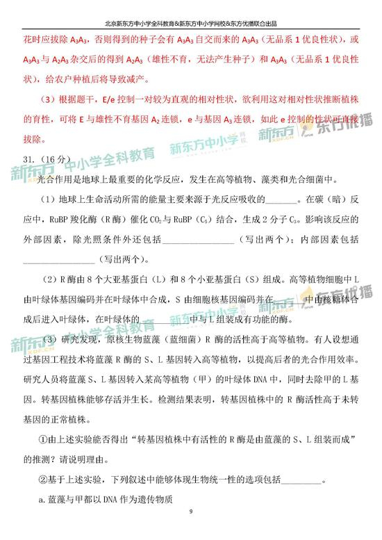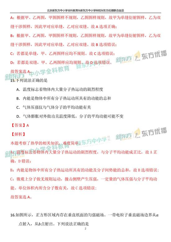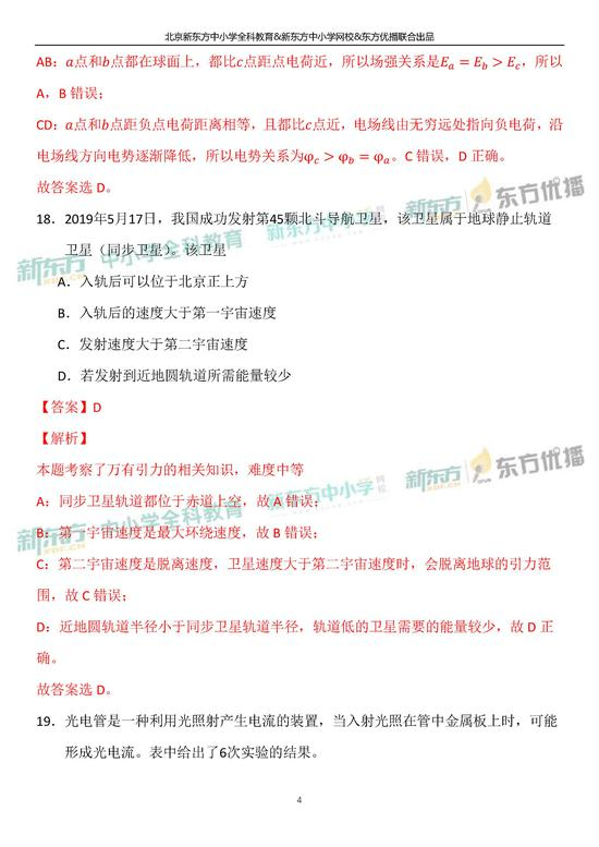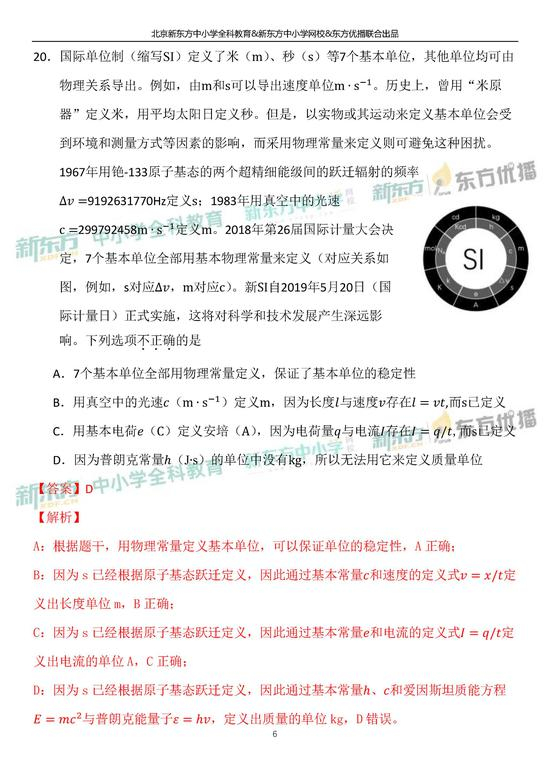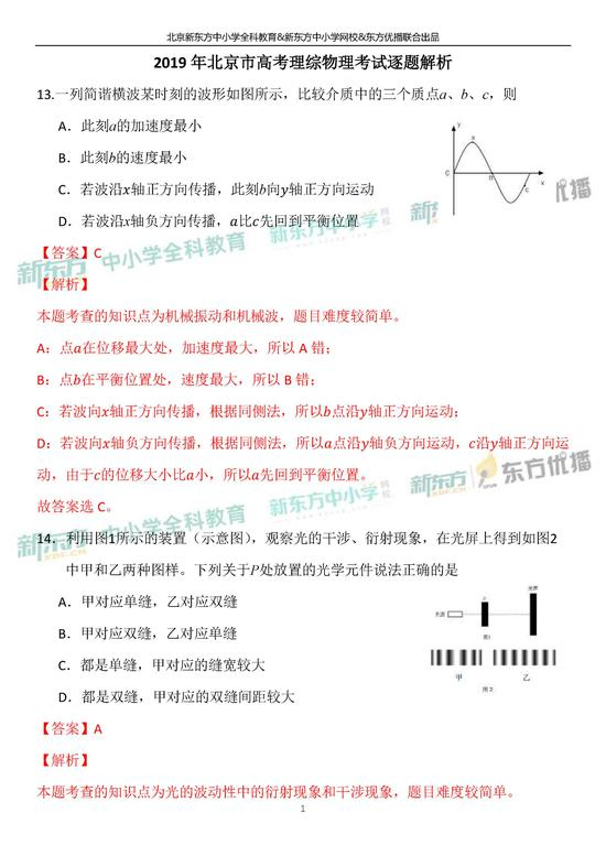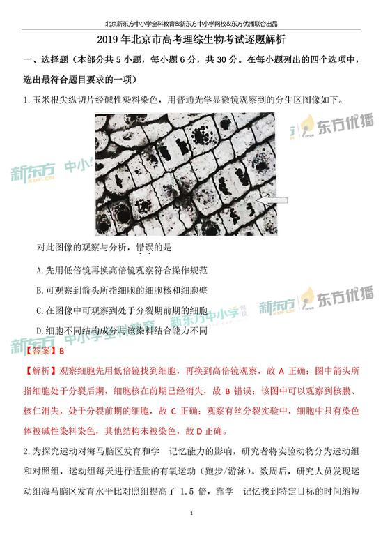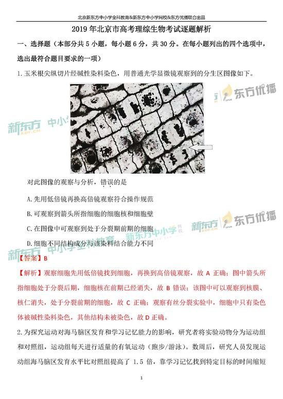 新浪教育讯 2019年高考理综考试已结束,以下为2019高考理综真题及参考答案(北京卷)。[适用地区:北京]