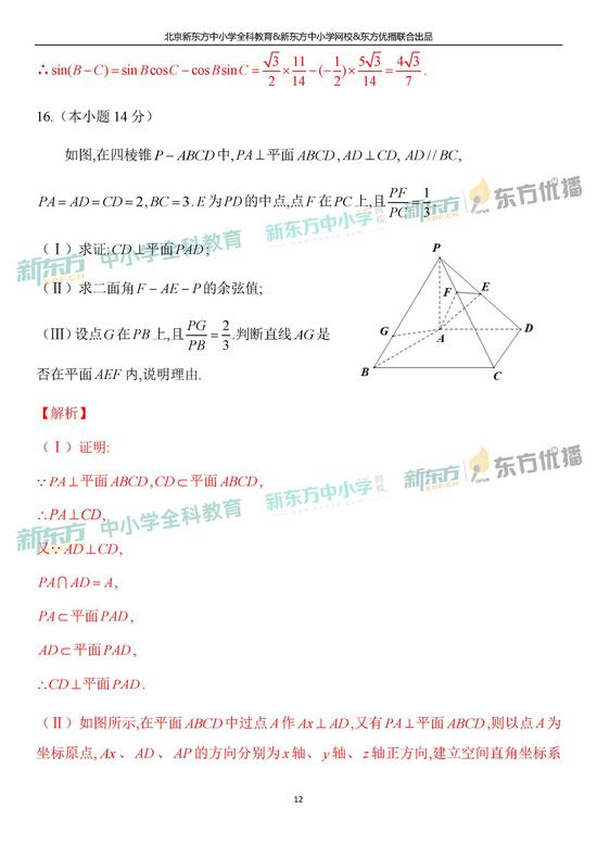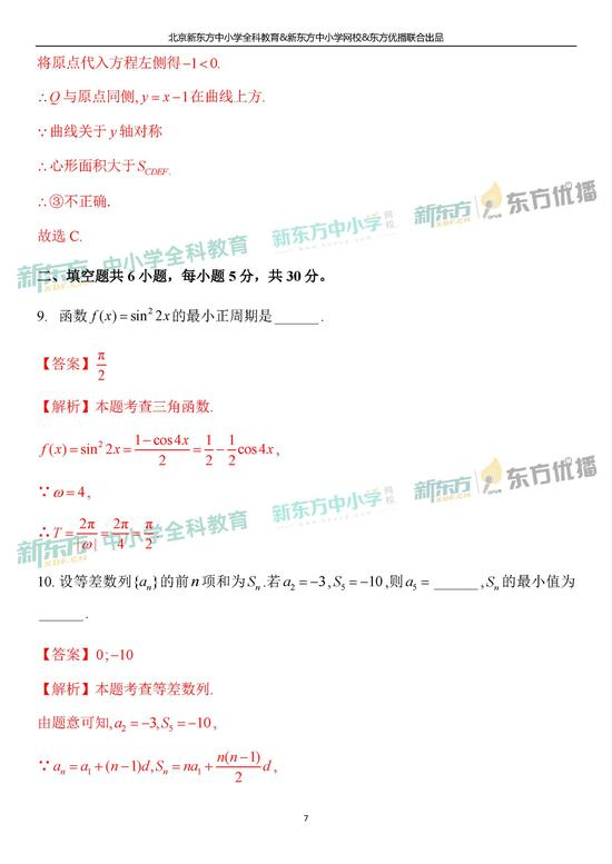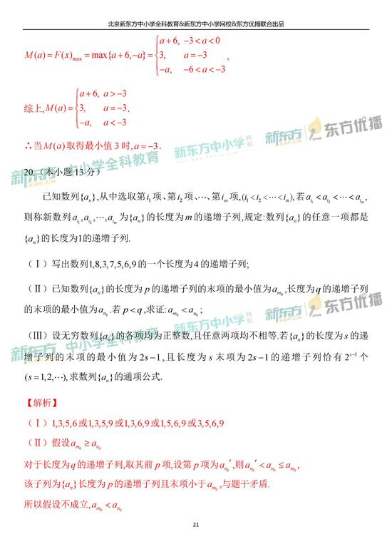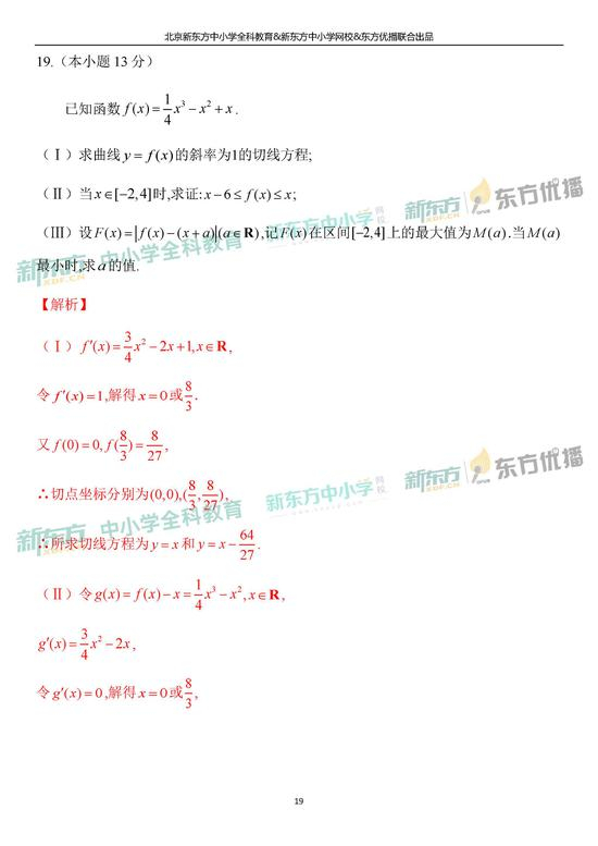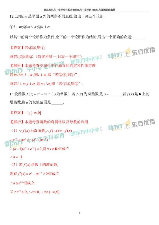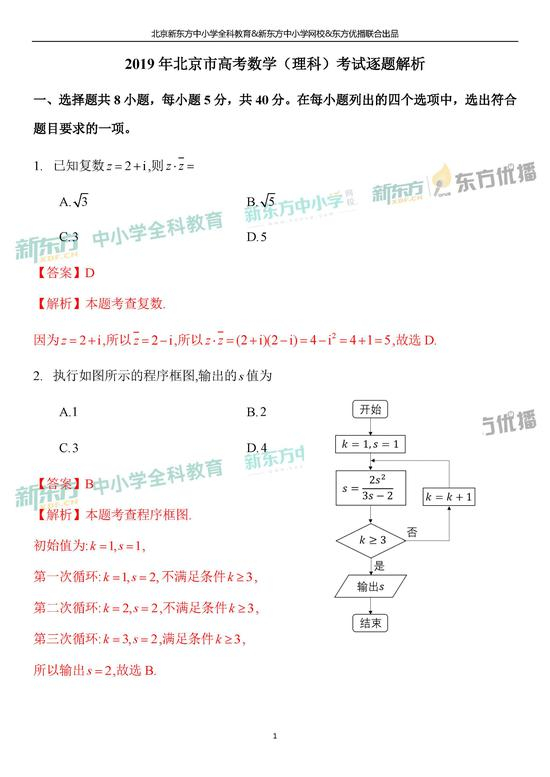 2019年北京市高考理科数学考试逐题解析