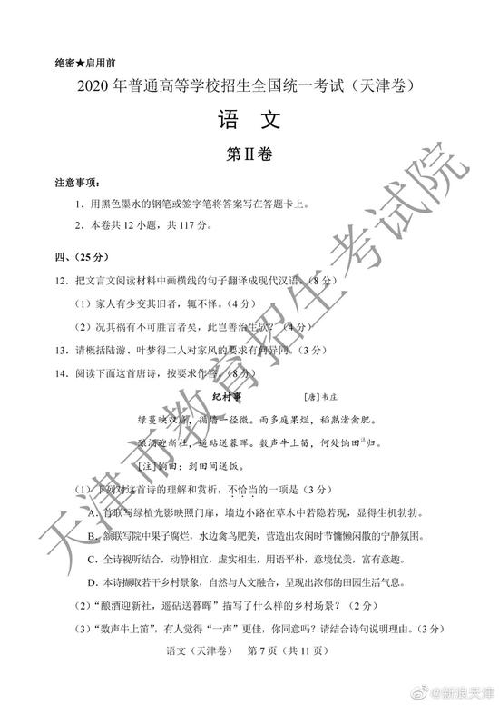 2020高考语文考试已结束,以下为 2020高考语文真题(天津卷)及参考答案。[适用地区:天津]