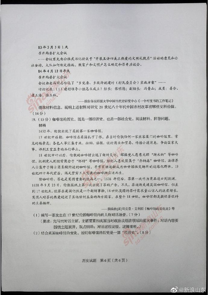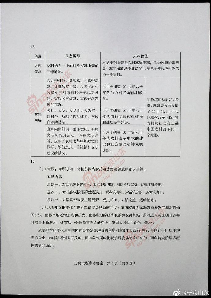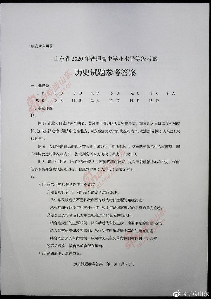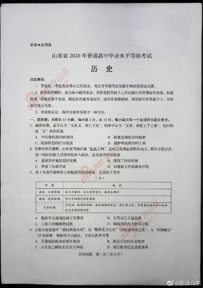 2020高考考试已结束,以下为2020新高考历史真题(全国卷Ⅰ山东)及参考答案。[适用地区:山东]
