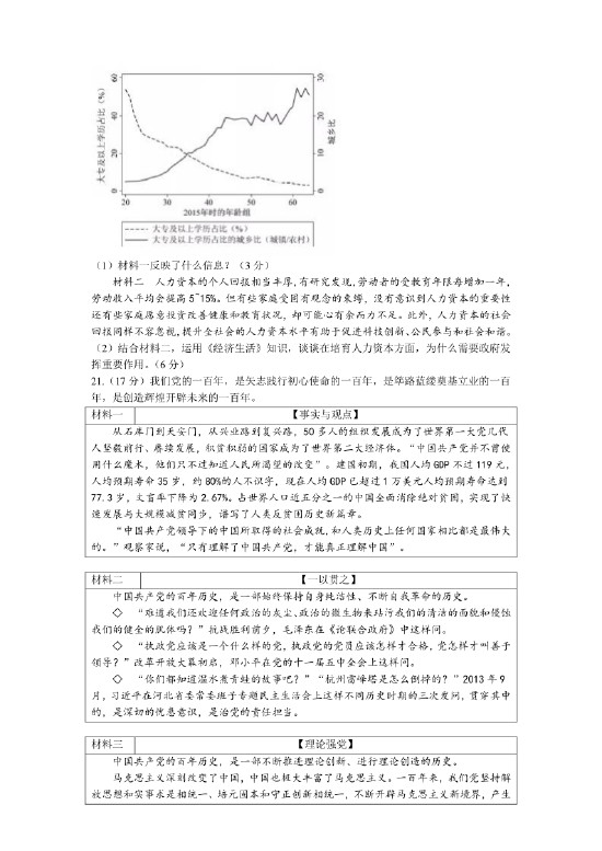以下为2021年普通高等学校招生全国统一考试 北京卷·政治真题及参考答案: