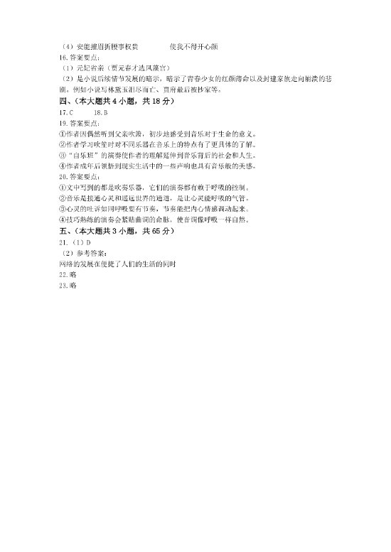 以下为2021年普通高等学校招生全国统一考试 北京卷·语文真题及参考答案: