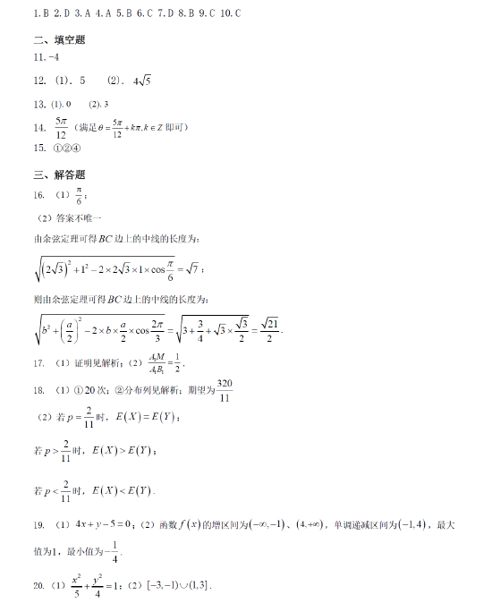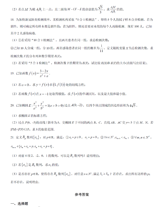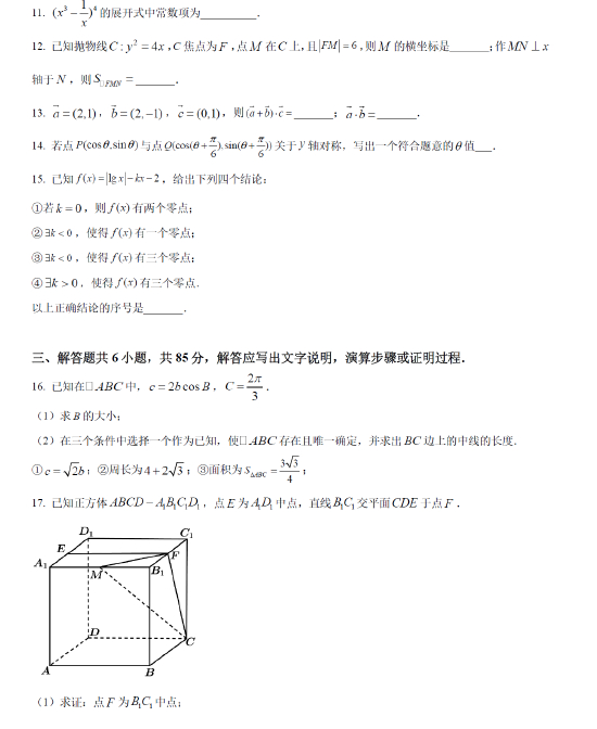 2021高考数学真题及参考答案(北京卷)