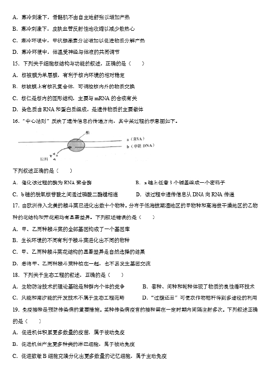2022年高考考试已结束,以下为2022高考生物真题(浙江卷)。