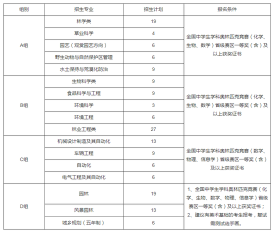 4、资格确定:依据各专业招生计划数、考生复试总成绩(笔试成绩+潜能测试成绩)、专业志愿及顺序,按照分数优先的原则,确定考生的自主招生入选资格及具体专业。笔试、潜能测试、体质测试单科成绩未达合格要求者,不能入围最终合格名单。入选名单在北京林业大学招生网公示,并报教育部及考生所在中学、省级教育行政机构公示备案。