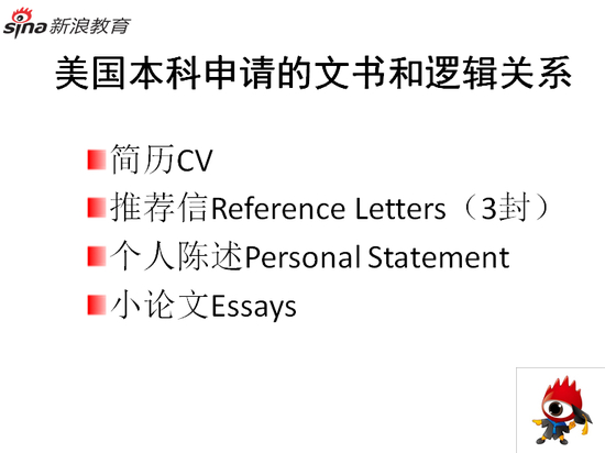 美国本科的申请文书主要是通过四种方式来呈现,第一就是简历,第二是推荐信,第三是个人陈述,第四是小论文。简历只是一个概述,讲个人成长履历和硬件条件。推荐信一般是3封,不一定求大求全,请求校长或者是活动名人去写,一般自己的任课老师即可,其中包括必不可少的班主任,因为班主任最了解学生,另外两个老师最好有申请的相关专业的老师,他来评估学生在那一领域内的学习能力。